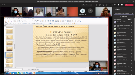Predavanje sa temom “Pravni aspekti zaštite žena od partnerskog nasilja za vrijeme pandemije Covid-19 sa osvrtom na nove izmjene KZ-a vezane za nasilje u obitelji” održala je